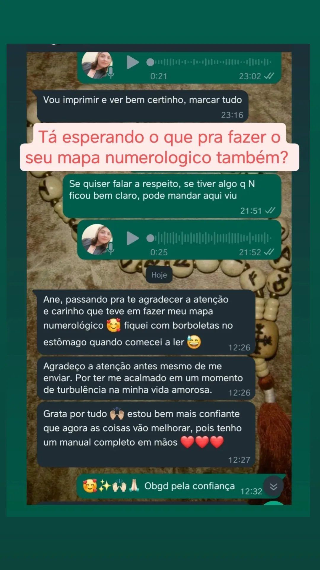 Foi através da Numerologia Cabalística que encontrei uma ferramenta poderosa para transformar minha própria vida. Desde que me formei em numerologia em 2022, tenho me dedicado a ajudar as pessoas a se reconectarem com sua verdadeira essência e a desbloquearem seu potencial oculto. Eu mesma vivenciei mudanças profundas e positivas ao aplicar os princípios da numerologia, e é essa experiência que quero compartilhar com você.